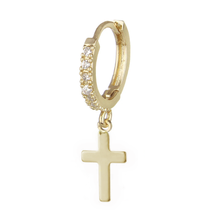 Mono orecchino Croce liscia Arricchisci il tuo look con il mono orecchino Croce liscia Piccole pietre preziose trasformeranno e impreziosiranno il tuo look di ogni giorno